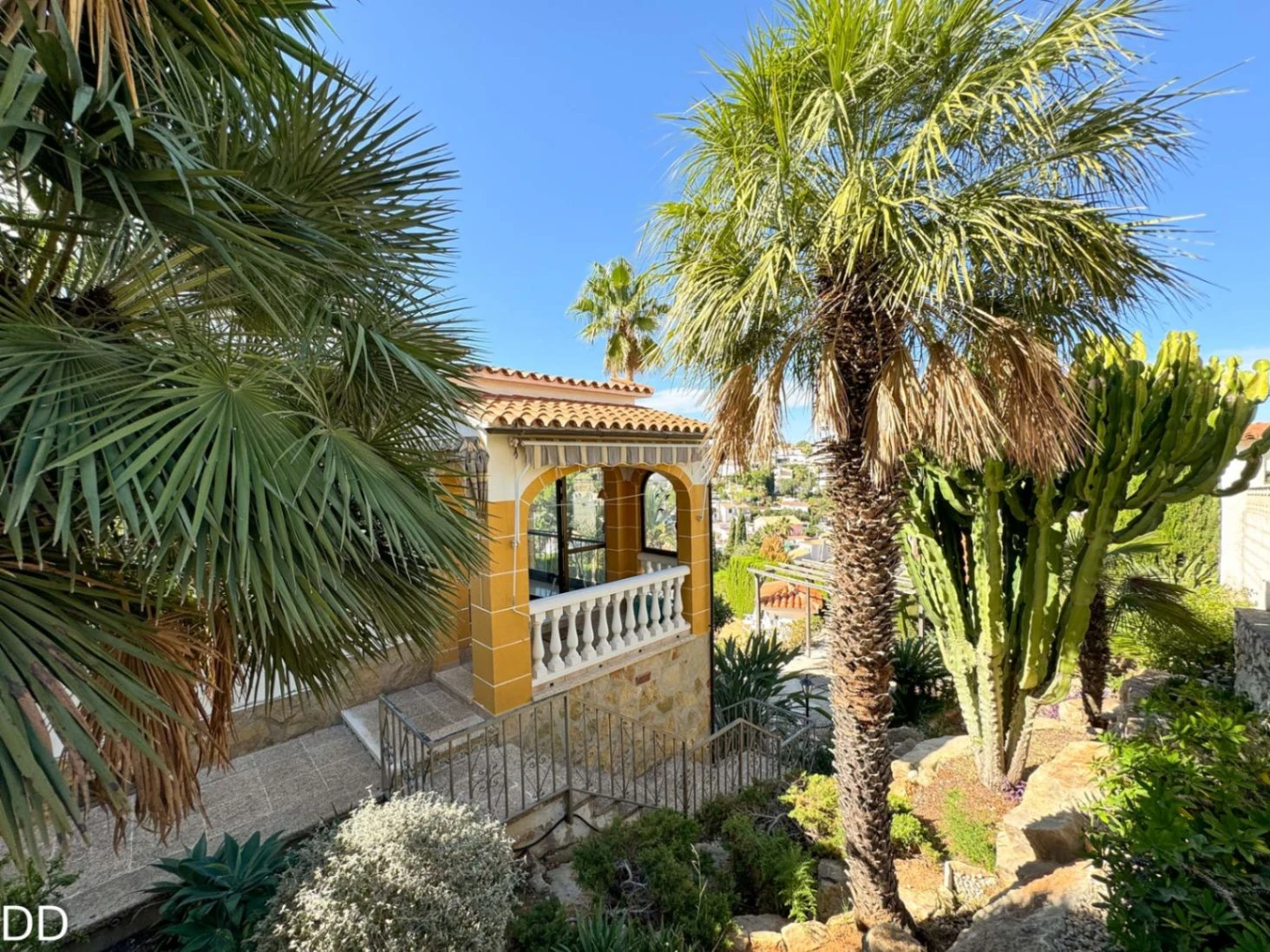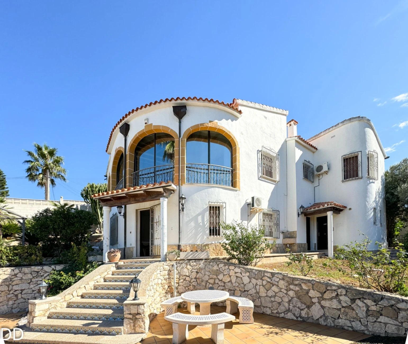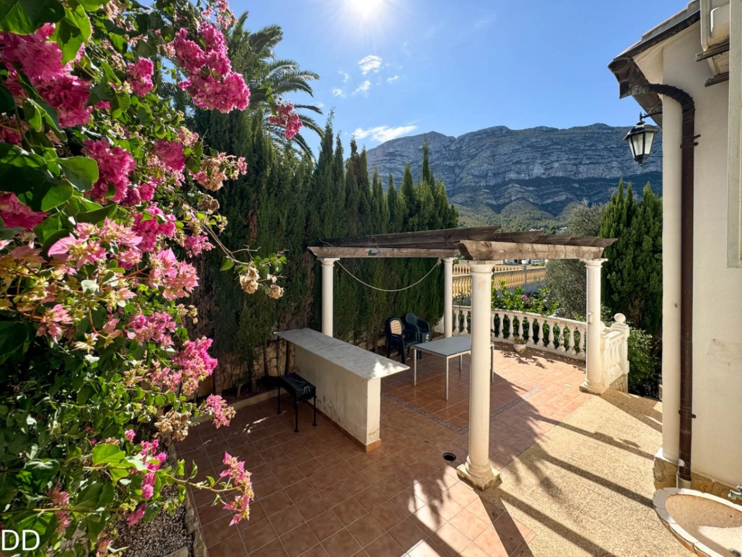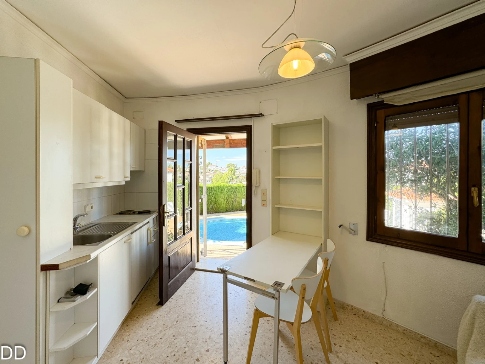 VILLA WITH PRIVATE POOL.The house is located 2.5 km from the center of Denia and 1.5 km from the Marineta Cassiana beach in Montgo, Florida Sol III part , very quiet residential area, culdesac. The house consists of two floors. The main floor has a fantastic glazed terrace with panoramic views, living room, separate kitchen with a pantry, two double bedrooms and a bathroom. The external staircase leads to the two independent houses on the ground floor; One of them consists of a small living room with an open plan kitchen, a double bedroom with a builtin wardrobe and a bathroom with shower. The other part of the ground floor is fitted out for housing with a bedroom and a bathroom with shower; a laundry room and a warehouse. The house offers you a rustic style in splendid mountain setting. The house is in good condition, although it needs some modernisation. The plot is very beautiful with a consolidated garden, it has several romantic corners, terraces, outdoor shower and a toilet. It is a good place to retreat and relax.It has covered parking.