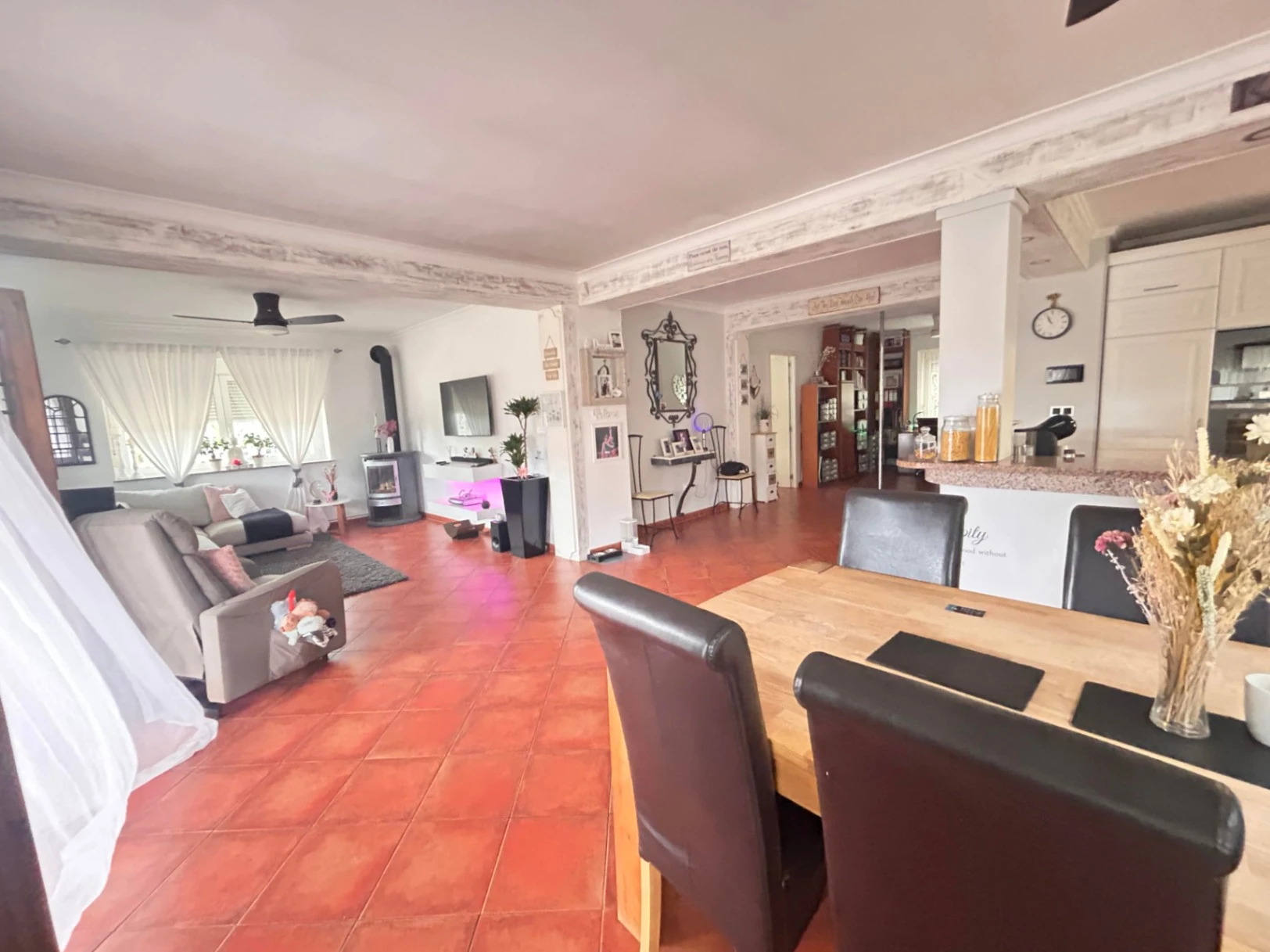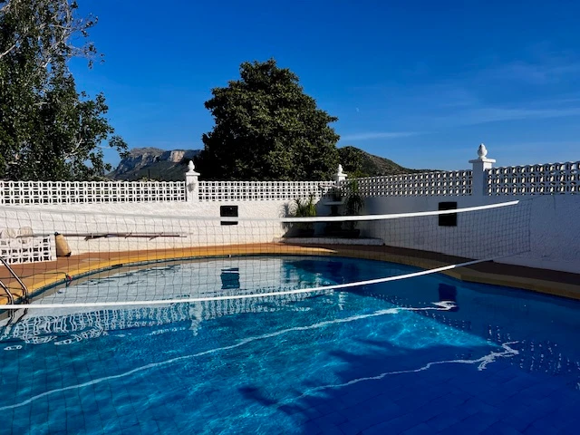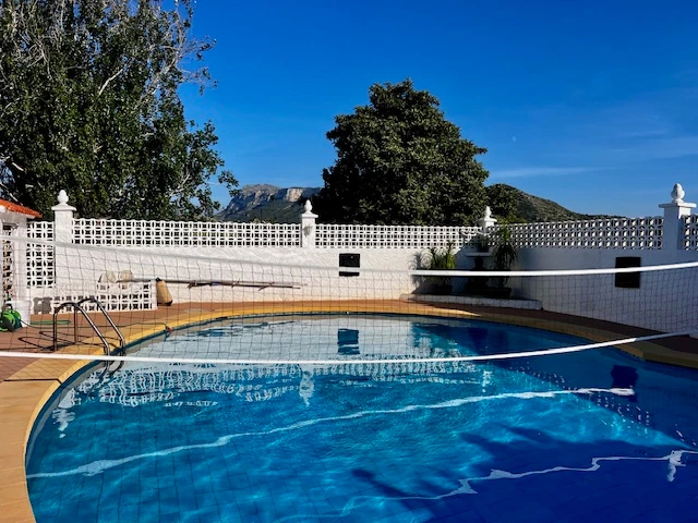 This property has a large plot of 2800 m2 and a renovated house on two floors including a guest apartment. Flat and sunny plot all year round in the area of the Marina Alta Regional Hospital. Within the plot there are various leisure areas such as a swimming pool, parking for several vehicles and a covered area to have a drink with friends. The house is distributed over two floors. On the ground floor we find the livingdining room with fireplace, comfortable kitchen with bar open to the dining room, office area, very large and spacious master bedroom, bathroom with shower and another guest toilet. Internal stairs lead us to the upper floor where we find two terraces, three more bedrooms with fitted wardrobes and another bathroom with a shower. From the covered terrace (large), we access a guest apartment in which there are two more bedrooms, a bathroom with shower and a separate kitchen.