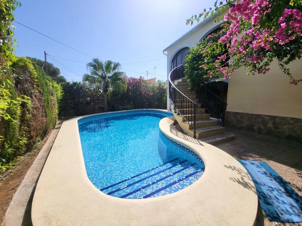 Spacious villa for sale in the Santa Lucia area . This house is distributed over 2 floors. On the ground floor we have a living-dining room with fireplace, large kitchen, 1 bedroom and a bathroom with bathtub. Openground overlooking the pool. The first floor has a living room with fireplace, a kitchen, 3 bedrooms and a bathroom. The plot occupies 600 m2 with a beautiful garden with plants, flowers and fruit trees. The area of Santa Lucia is an exclusive, quiet area and close to walking distance from all services. The distance to the beach of Marineta Casiana is about 1500 m.