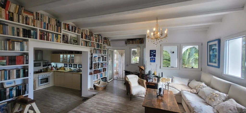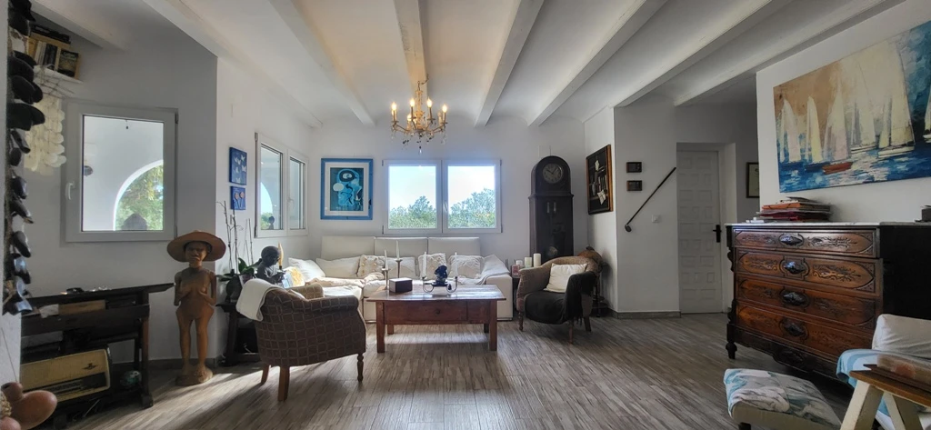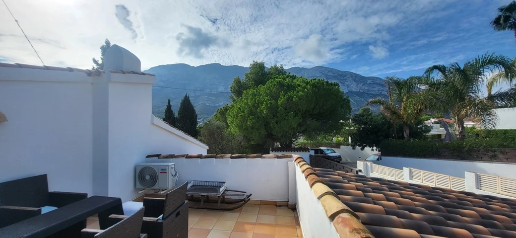 Beautiful villa with personality. This property has been renovated in 2018 and has an independent apartment with a bedroom, a bathroom, living room and kitchen. The main house is distributed in a large kitchen with dining room, living room, a large bathroom, two bedrooms one of which has a dressing room. On the plot there is a barbecue area in front of a beautiful porch, several terraces with rest areas and a beautiful swimming pool with open views of the Montgo natural park, parking area for two cars and storage room. If you like houses with personality and enjoy a quiet and sunny place, this is your option.