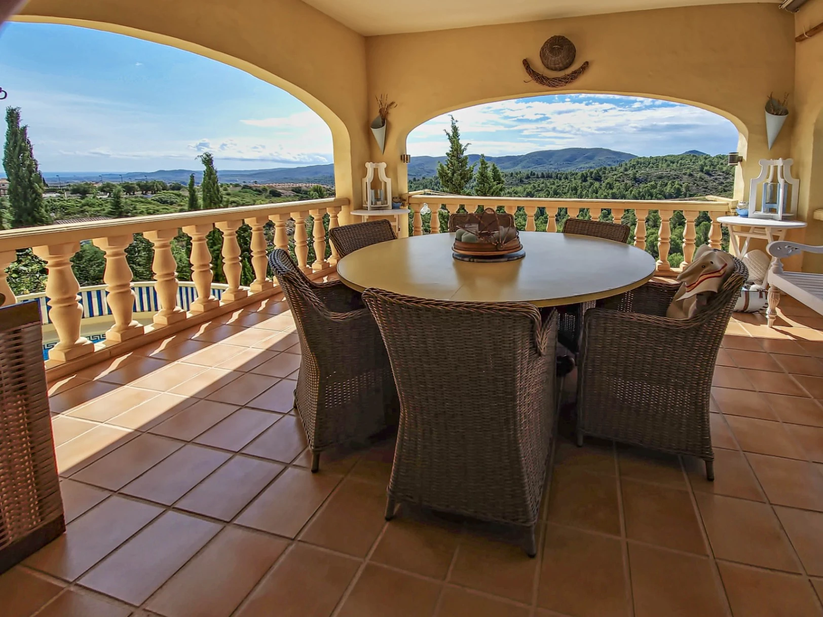 Villa with 6 bedrooms in Pedreguer. We present this beautiful and modern villa in Monte Pedreguer. Completely renovated with spacious and modern rooms, it consists of 6 bedrooms and 4 bathrooms. The house is accessed from the upper floor where we find 3 bedrooms and 3 bathrooms, a spacious living room with a beautiful double door to enter the kitchen, which in turn has access to the upper terrace where you can enjoy the pleasant views of the valley and the sea, where you can see Ibiza or Formentera on clear days. When you go down to the lower floor you find a large space where you can make a second room or you can use it as the owners currently have, as a games room, massage, cinema room... Whatever you want with all the space it offers, from this second living room you have access to the 3 bedrooms and the bathroom that this floor has, as well as the exit to the lower terrace where you meet the pool and you can also enjoy the open views and all the nature that surrounds you. The entire garden of the house is easy to maintain and makes the outdoor area of the house very charming in every corner of it. Don't miss this opportunity and contact us to request a viewing and see the incredible potential that this property has. Close to all amenities but in a quiet area with lots of nature.