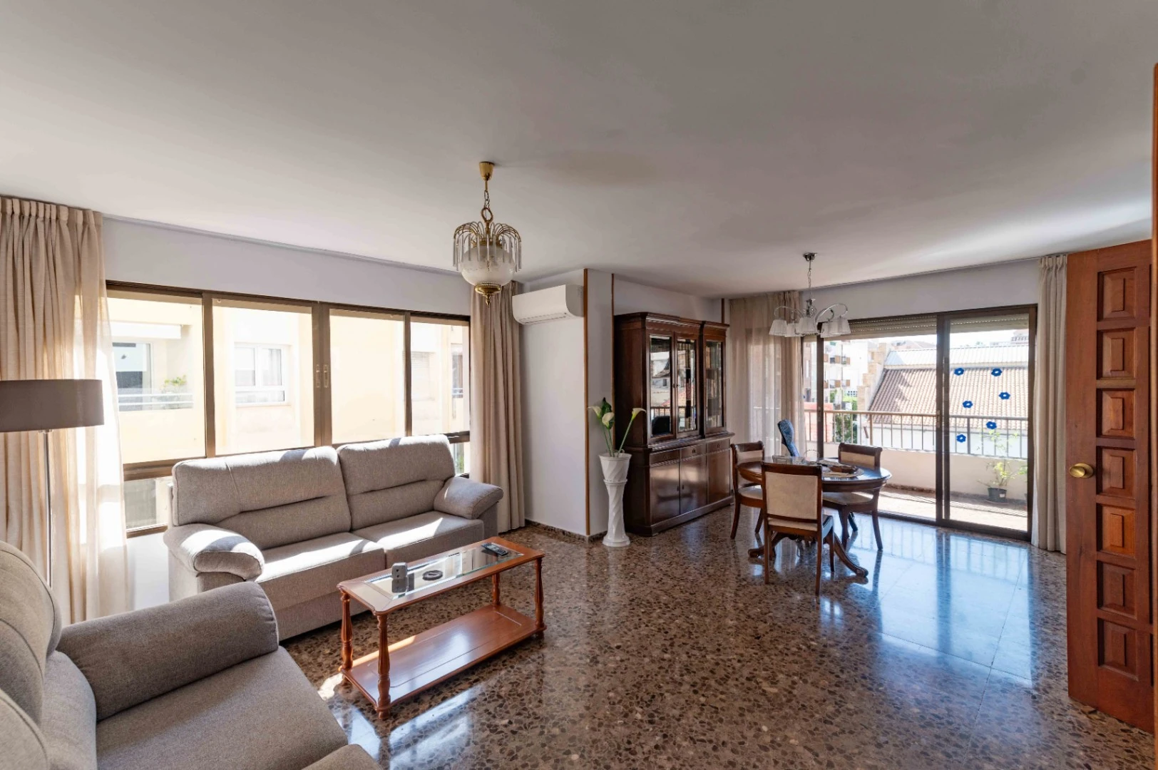 Apartment for sale in the very center of Denia, 172m2 built, corner, sunny and bright large community spaces and in front of Mercadona center, port of Denia just 100m, consists of entrance, corridor distributor to 4 bedrooms all exterior one of them en suite, large living room with access to terrace to this, large closed kitchen with access to terrace, It has air conditioning in some rooms. It does not have a garage but has a storage room of 28m2 on the terrace of the community. An apartment that we would all like to enjoy for its spaciousness, light and unbeatable location.